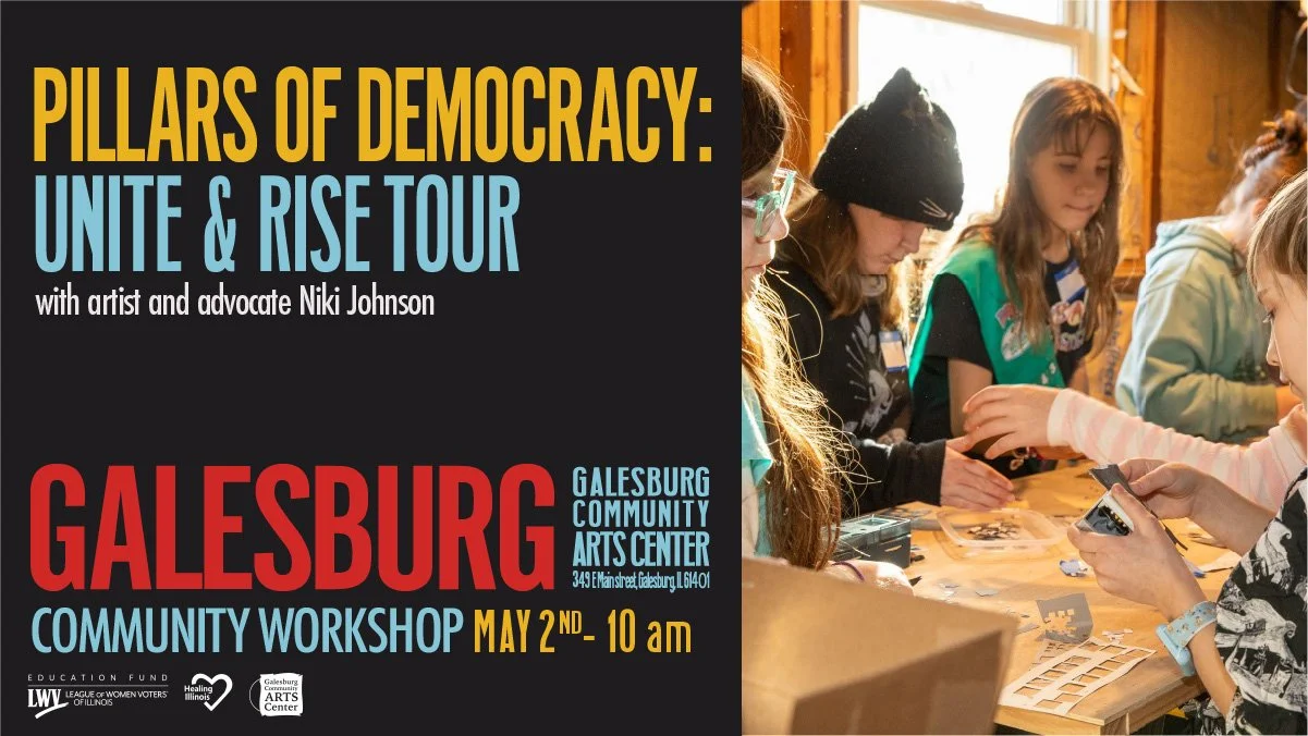 Designed for teens and adults, this interactive workshop invites participants to explore identity, voice, and civic engagement through art-making and conversation. Led by artist Niki Johnson, teens create expressive artwork while reflecting on what democracy means to them and their role in shaping the future.
