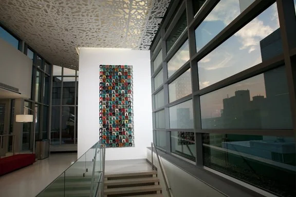 Bookends- Repurposed bookends, fasteners, 120”x 8”x 60”, In the permanent collection of Madison Central Public Library